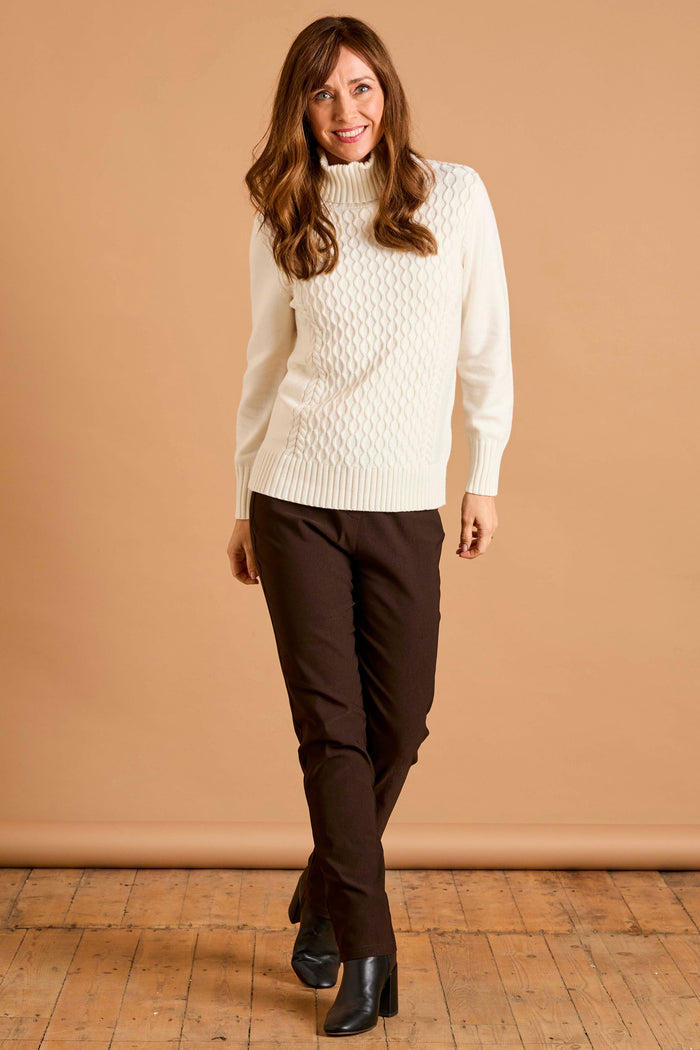 Emreco Cable Front Chunky Rol Neck Jumper Ivory