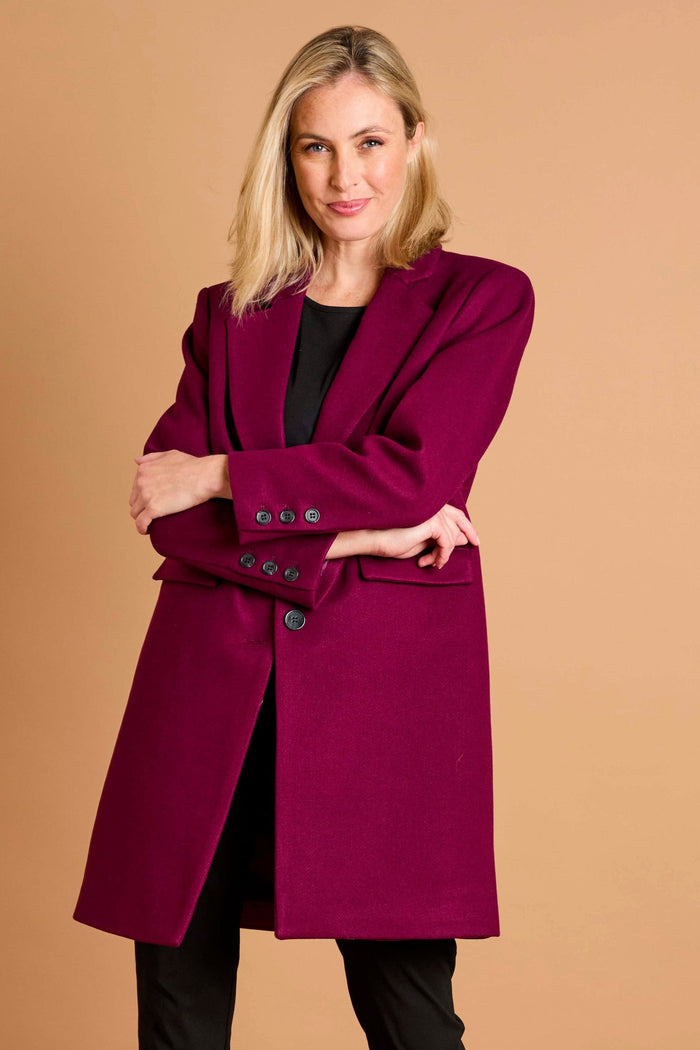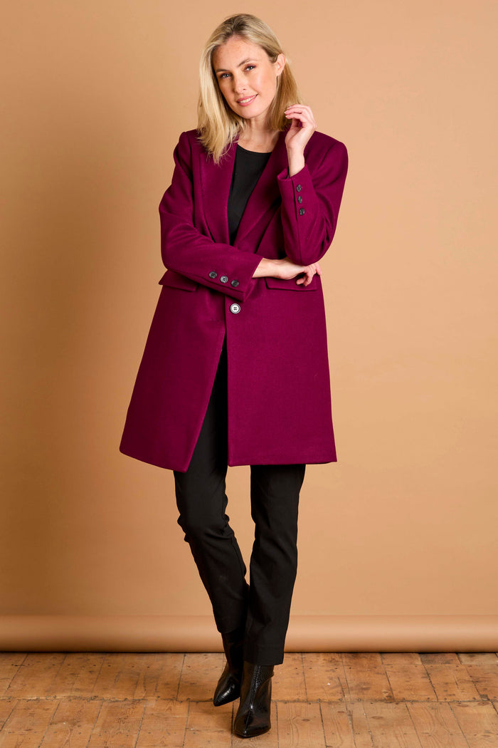 This is a simple yet stylish coat. Featuring a single breasted fastening and notch lapel with front flap pockets this tailored coat exudes a look of timeless sophistication. Designed in a flattering mid-length with button fastening.nnRecommended to size down in this coat.