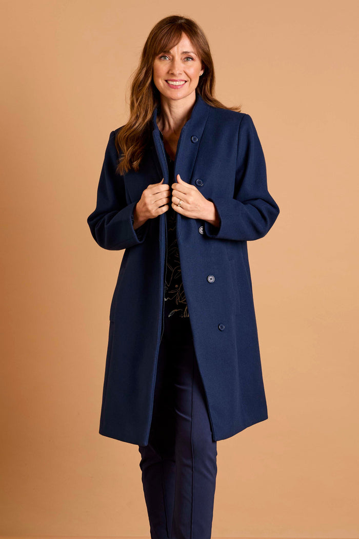 This elegant wrap coat is the perfect blend of style and sophistication. Featuring a sleek structured design the coat comes in four timeless colours. Its smart streamlined silhouette includes two discreet side pockets providing both functionality and a polished look. The minimalist design gives it a modern edge while the hidden button closure enhances its clean aesthetic.
