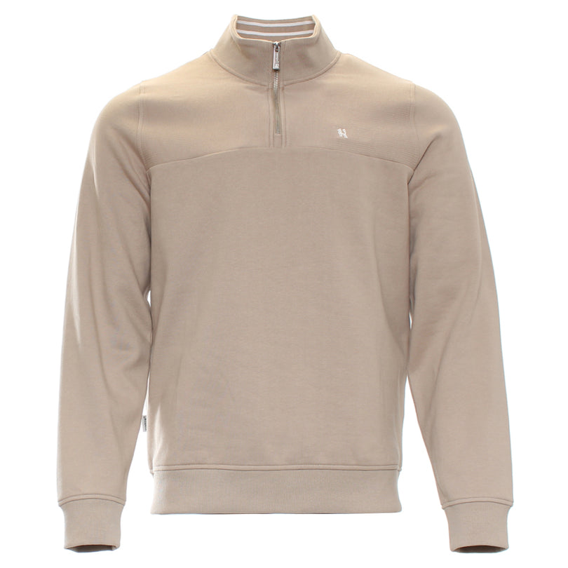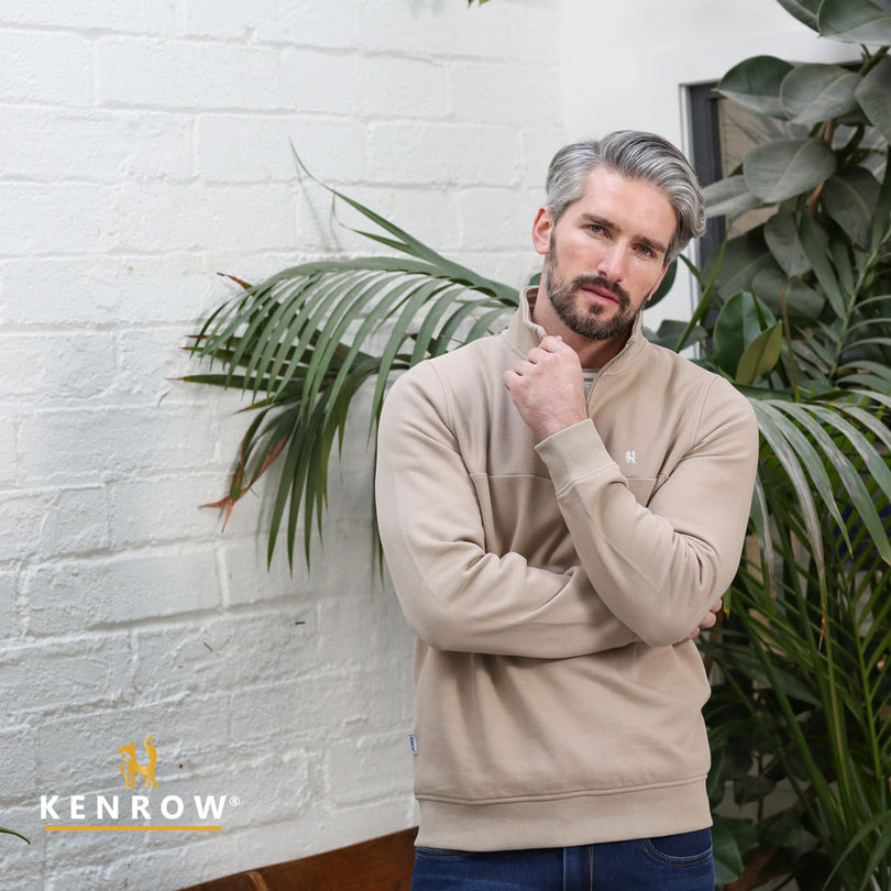 The Kenrow Phoenix Half Zip in Sand is a refined casual staple designed for effortless everyday wear. Crafted from a soft cotton-rich fabric this half zip sweatshirt offers warmth comfort and a clean modern finish. The neutral sand tone brings a smart versatile look that pairs easily with denim or chinos.nnFeaturing a sleek zip neckline with subtle contrast trim ribbed cuffs and hem and a tailored silhouette the Phoenix Half Zip is ideal for layering while maintaining a polished appearance. Finished with signature Kenrow chest embroidery for understated branding.