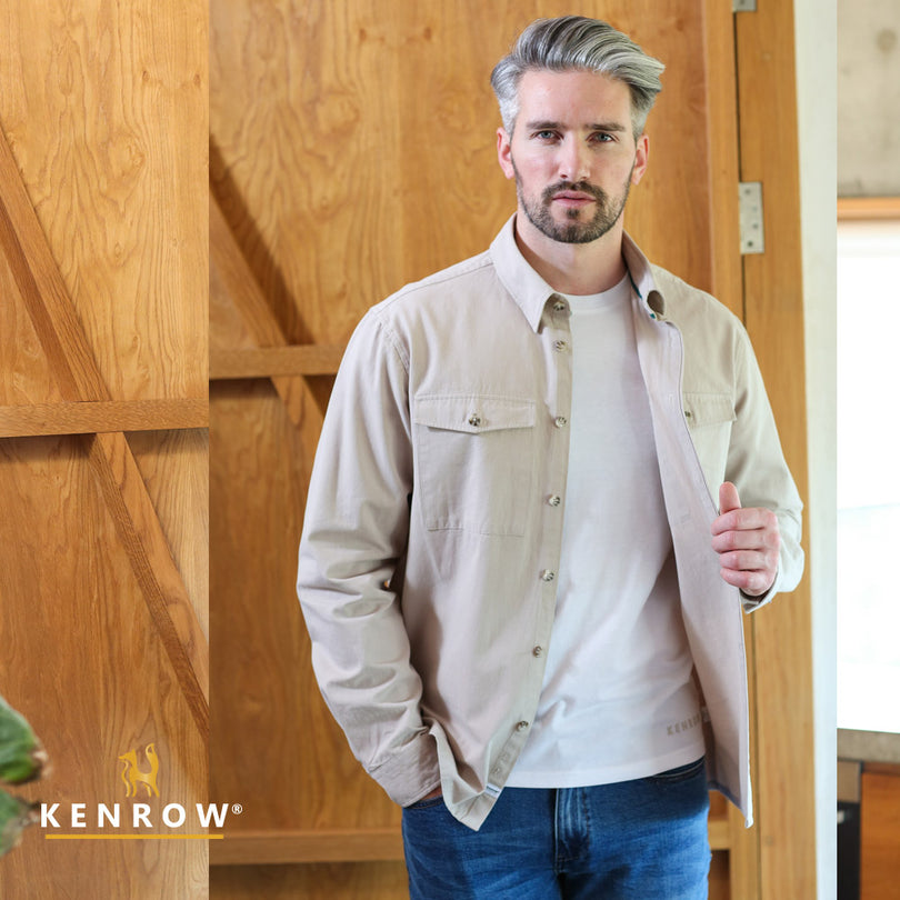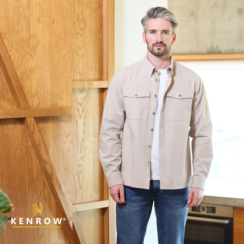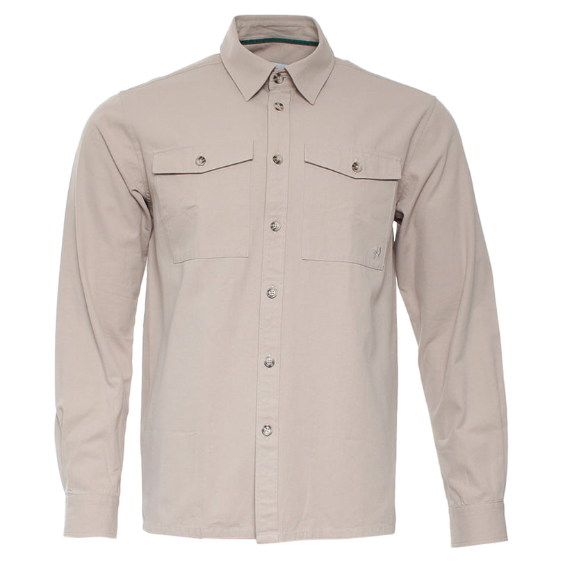 A stone-toned overshirt with utility-inspired details — perfect for layering