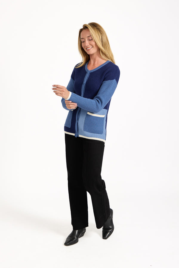 Why choose just one colour for your cardi? This one has a cool collection of colour blocks and it’s made from a very soft knit. It features two front pockets finished with buttons making it a stylish addition to your autumn-winter wardrobe.