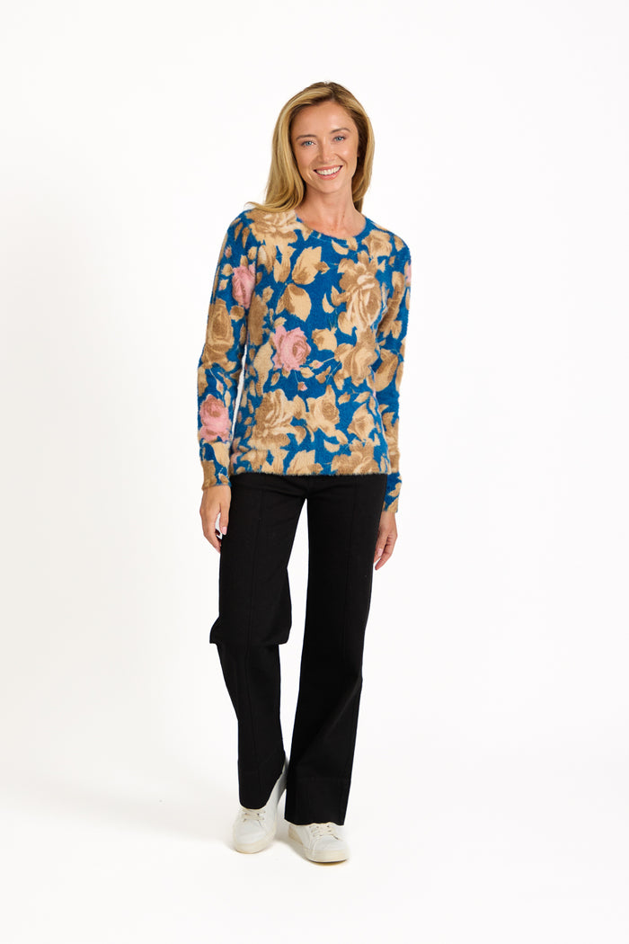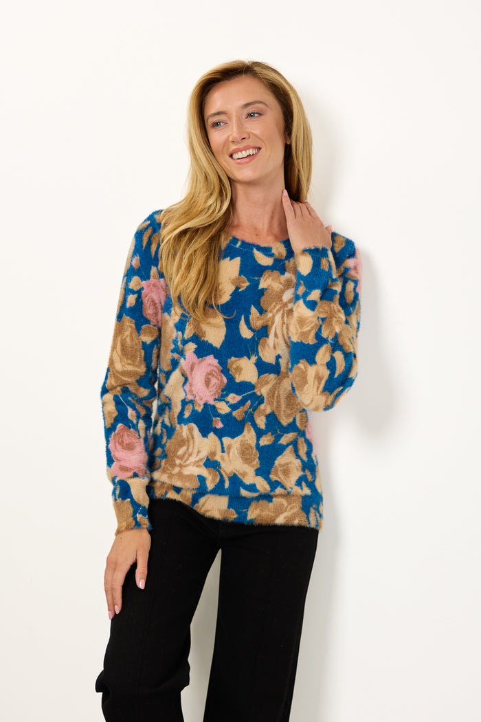 Our Rose Print Fluffy Yarn Jumper is designed with a bold oversized rose print. The fluffy yarn knit makes it an ideal choice for the cooler weather offering a soft luxurious feel against the skin. The floral design effortlessly adds a pop of vibrant colour to your look brightening up any autumn-winter day.