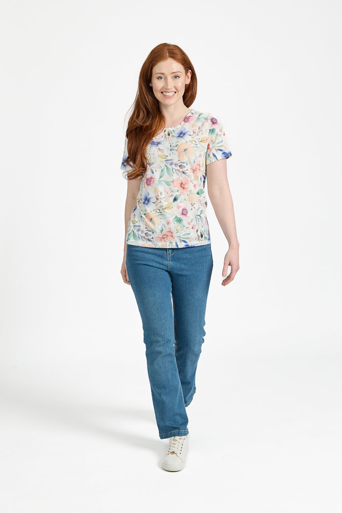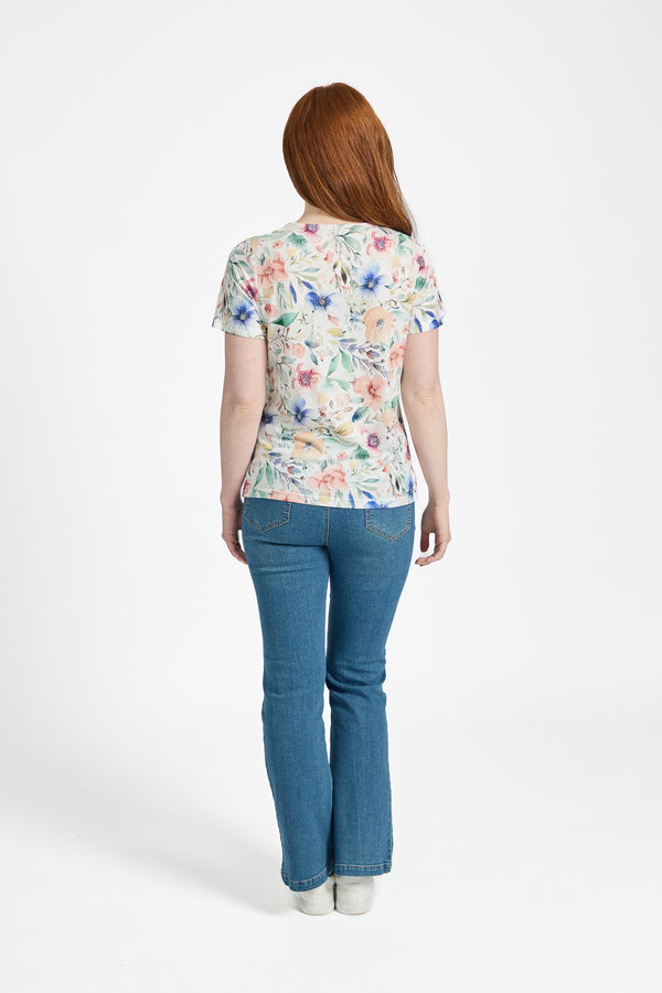 Brighten your seasonal wardrobe with this Floral Print Water-Colour Effect Top. Designed in a lightweight fabric ideal for warmer days it features a soft flowing silhouette that drapes effortlessly on the body. The water-colour floral print adds an artistic delicate touch creating a fresh and feminine look. A go-to piece for spring-summer it brings together comfort colour and contemporary elegance.