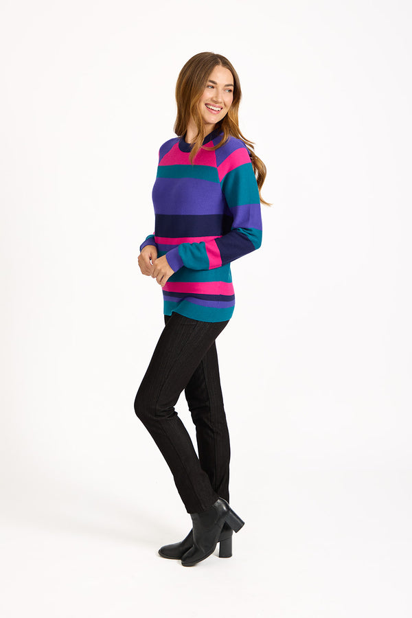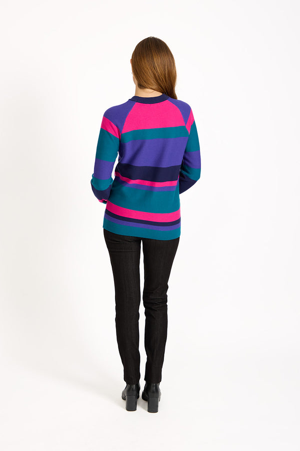 Enhance your everyday collection with our Multi Stripe Knit Jumper. Its multi-stripe design will keep you looking stylish and the soft and stretchy knit will ensure you are comfortable whatever errand you are running. This jumper is perfect to transition from season to season.