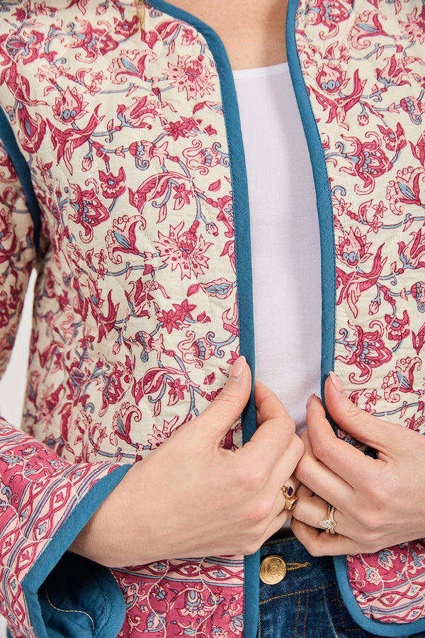 One jacket two looks. This Reversible Paisley Quilted Jacket is the perfect transitional piece. We love the curvy stitch lines and statement patch pockets that you can fill with your everyday essentials. Wear yours with a classic white tee and denim jeans.