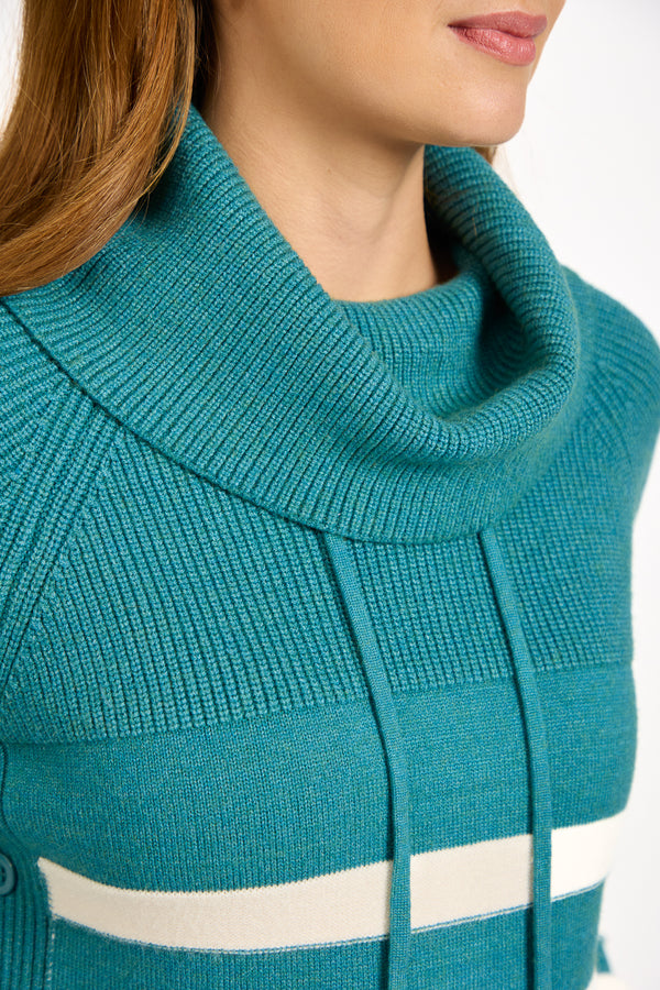 Our wardrobe essential Stripe Knit Cowl Neck Jumper a piece that is made to stay in your wardrobe year after year. Its soft heavy-knit texture is sure to keep you toasty on the chillier days making it a perfect choice to wear when transitioning between seasons. It features one front pocket ribbed cuffs and a thick hem finished with stylish buttons to add style to your everyday look.
