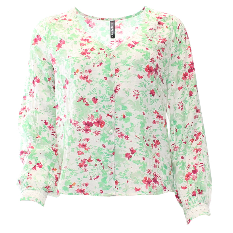Bright fresh and beautifully feminine the Ann Blouse by Rant and Rave is a standout piece for effortless everyday styling. Designed with a soft green base and vibrant floral print this blouse brings a cheerful pop of colour while maintaining an elegant wearable feel.nnThe flattering V-neckline and delicate button-front detail create a relaxed yet polished silhouette while the lightweight fabric ensures all-day comfort. Finished with long sleeves and softly gathered cuffs the Ann Blouse is perfect for dressing up or down throughout the seasons.nnStyle it with your favourite denim for an