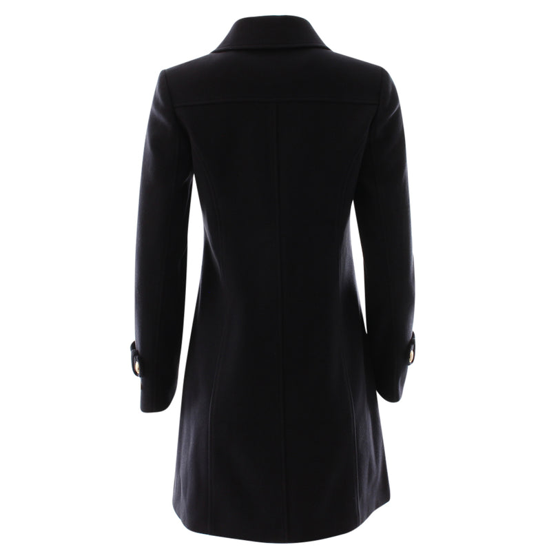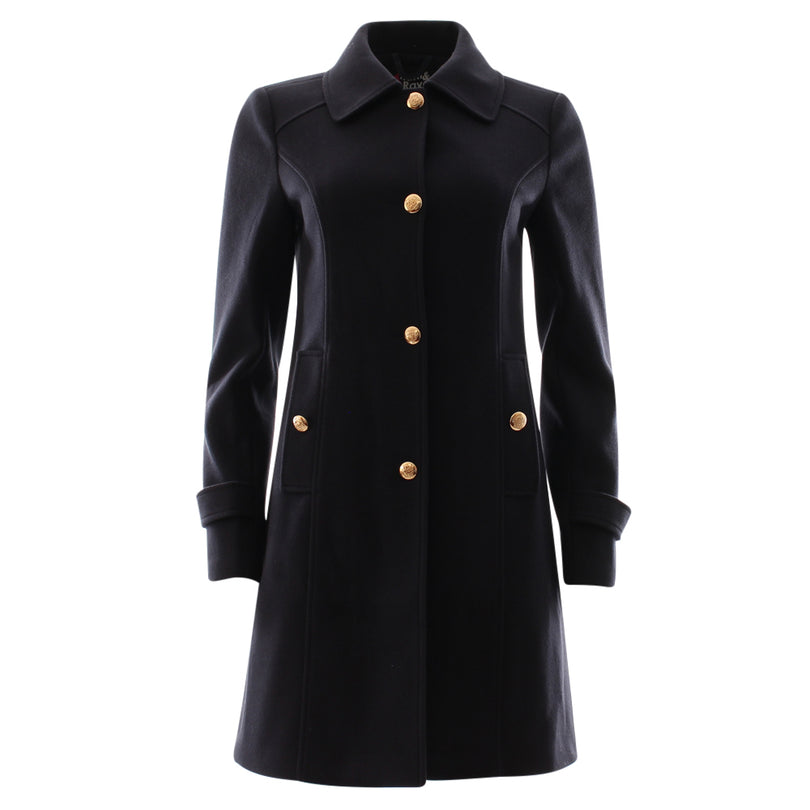 Effortless style meets timeless sophistication with the Rant and Rave Kyrie Coat in Navy. Crafted from a premium wool-blend fabric this tailored coat offers a flattering streamlined silhouette that works for both casual and dressy occasions. The rich navy hue pairs beautifully with everything from jeans and boots to office-ready dresses while the gold-tone button detailing adds a refined finishing touch. Designed with a classic collar front button closure and side pockets for practicality this coat is as functional as it is elegant. Perfect for layering through autumn and winter the Kyr