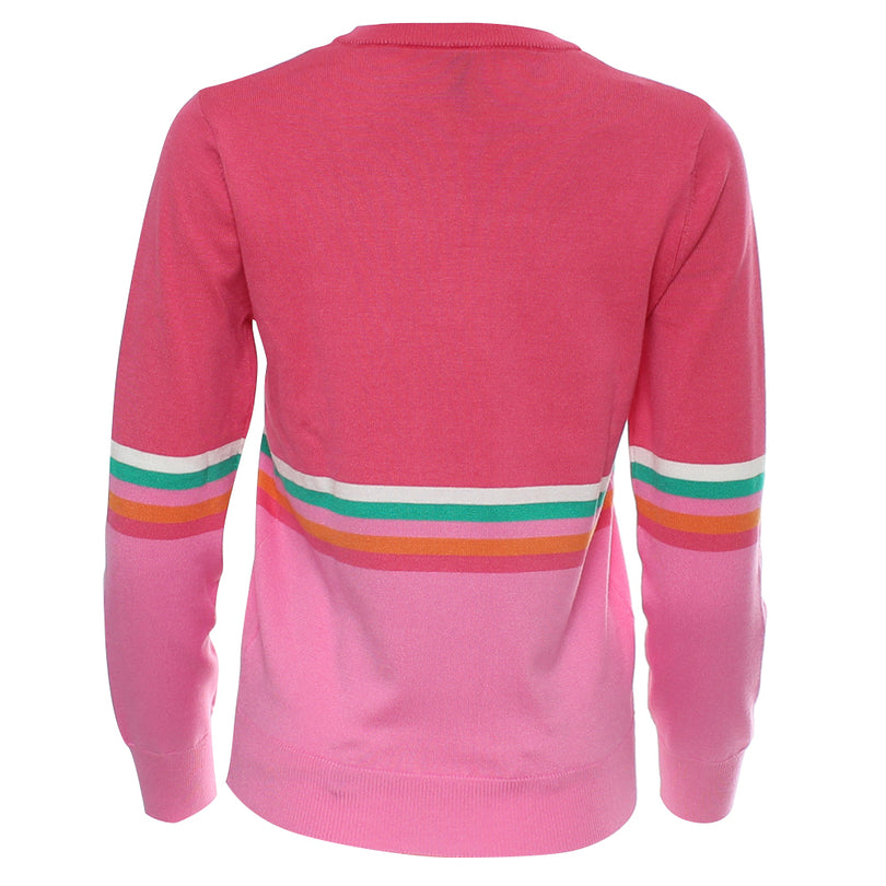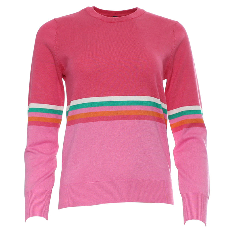 The Rant & Rave Suzy Jumper in Pink is a bright and stylish knit designed to add colour and comfort to your everyday wardrobe. Featuring a vibrant pink tone with contrasting stripe detail across the chest this jumper brings a fresh and playful feel to casual dressing while maintaining a clean and modern look. The classic round neckline and long sleeves create a timeless silhouette that is easy to wear season after season.nnThe soft knit fabric offers comfort and warmth without feeling heavy making it ideal for layering through changing seasons. Styled with jeans or casual trousers the Suzy